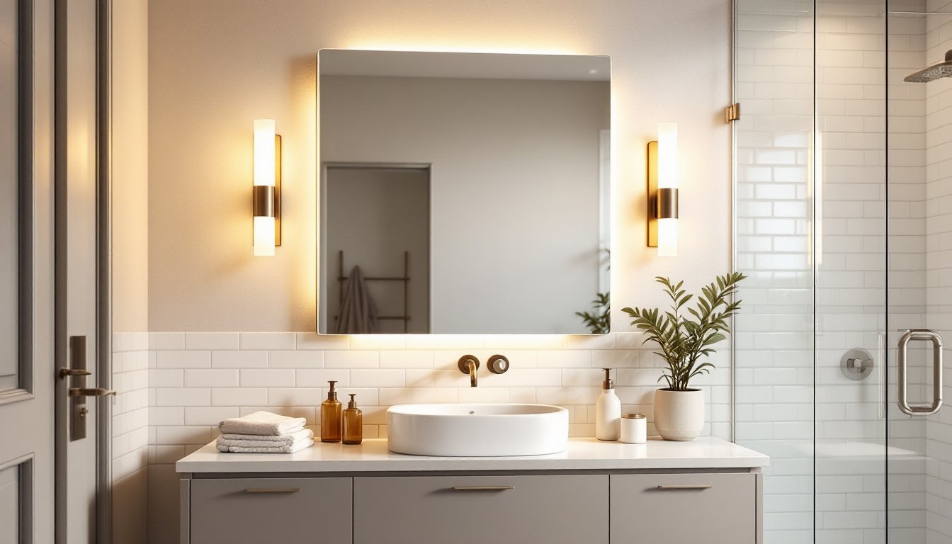 - Choose between side-mounted sconces, overhead strips, or integrated LED mirrors; most bathrooms need 1,500 to 2,000 total lumens, with fixtures mounted at eye level for flattering results.