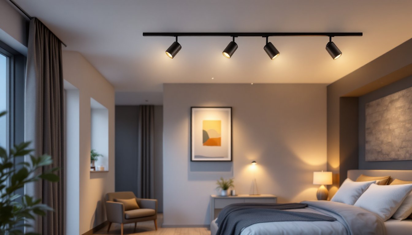 Voltage matters too. Most residential bedroom track systems use 120V (standard household current) or low-voltage (12V or 24V) systems. Low-voltage setups require a transformer but deliver warmer, more directional light and are safer for areas near water. For bedrooms, 120V is typical and easier to install.